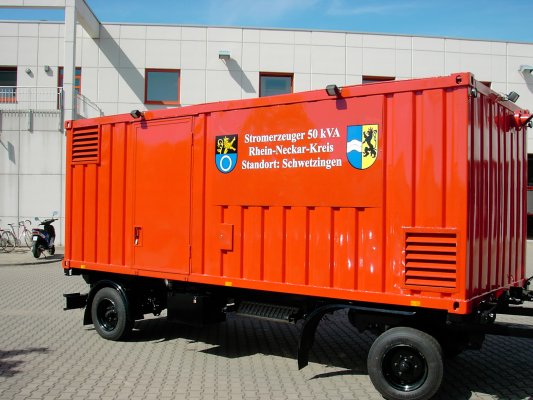 Der Rhein-Neckar-Kreis beschaffte dieses dieselgetriebene 50 kVA-Notstromaggregat um bei Großschadenslagen wie Hochwasser und Sturmschäden oder bei Stromausfall in Ladenburg das Führungs- und Lagezentrum mit Strom zu versorgen.