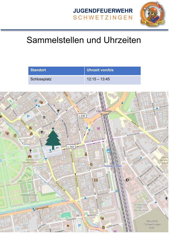 Die Jugendfeuerwehr Schwetzingen sammelt zum zweiten mal Ihre Weihnachtsbäume ein. Bitte beachten Sie, dass wir NICHT jede Straße befahren werden, sondern zentrale Anlaufstellen ausweisen, an denen Sie uns Ihren vollständig entschmückten Tannenbaum gerne zur Entsorgung abgeben können.