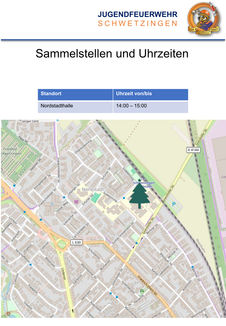 Die Jugendfeuerwehr Schwetzingen sammelt zum zweiten mal Ihre Weihnachtsbäume ein. Bitte beachten Sie, dass wir NICHT jede Straße befahren werden, sondern zentrale Anlaufstellen ausweisen, an denen Sie uns Ihren vollständig entschmückten Tannenbaum gerne zur Entsorgung abgeben können.